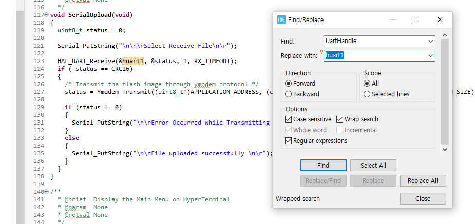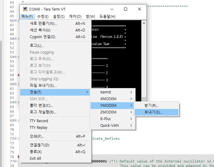 8. common.c, menu.c, ymodem.c의 파일에 extern UART_HandleTypeDef huart1; 외부변수 처리